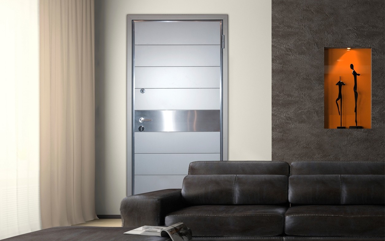 Εσωτερικό της πόρτα : Μονοκόμματα διαμορφωμένα χαλύβδινα φύλλα με κάθετες και οριζόντιες ενισχύσεις τύπου Ω που δημιουργούν ένα ενιαίο συμπάγες σύνολο.